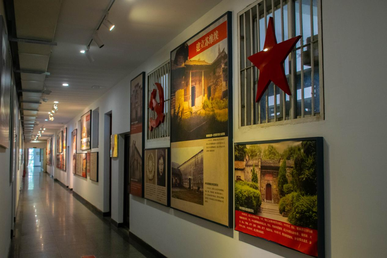 走进人文楼的革命历史长廊,一幅幅展现中国步履维艰的革命历程与伟大精神的作品映入眼帘。从井冈山的星火燎原到延安宝塔的巍然屹立,从长征路上的坚韧不拔到抗日战争的英勇无畏,从解放战争的波澜壮阔到新中国成立的礼炮轰鸣,这些精神瑰宝如同一片片红绸,串联起中华民族的精神血脉,激励着青年学子在新时代的征程继续前行。