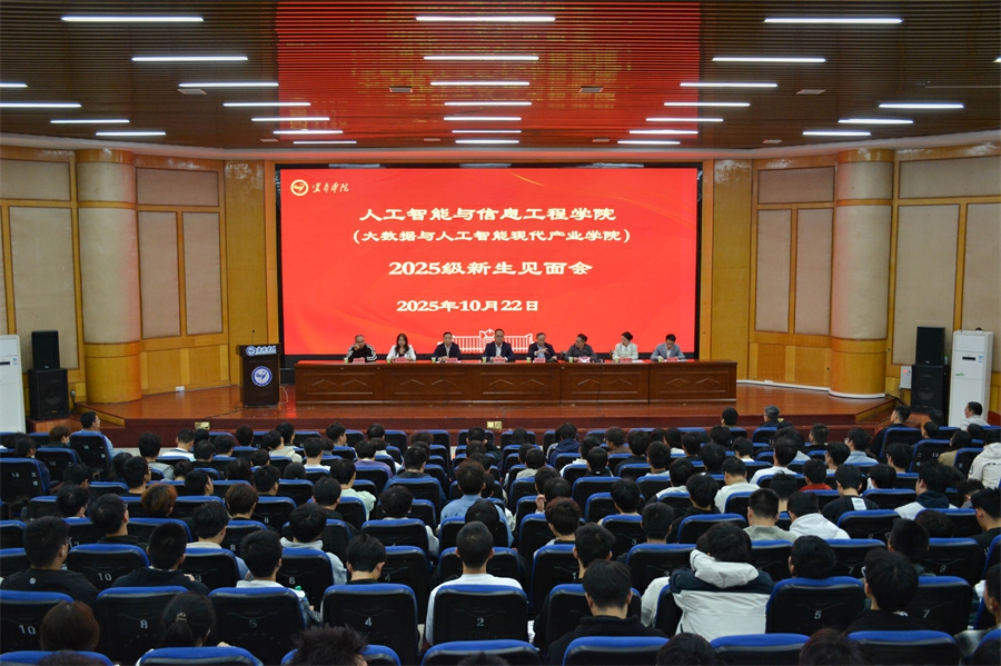 本站讯(学生记者:王磊 娄琦萱 责任编辑:温雅晴)10月22日下午,人工智能与信息工程学院在主教楼学术报告厅、实训楼E205以及医农大N201,通过线下与线上相结合的方式举行了新生见面会。宜春学院副校长黄伟、宜春市数据局党组成员、副局长吴先锋,宜阳新区管委会副主任熊林芝,宜春市大数据产业集团有限公司董事、财务总监周凌婕,宜春市互联网协会秘书长郑德华,安博教育科技集团江西基地总经理喻军等产业学院共建单位领导,我院领导班子成员、科室负责人、系主任、新生班主任等出席此次会议。此次会议由胡红武主持。