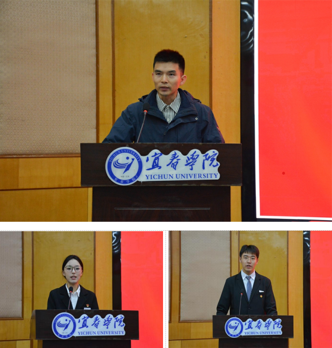 产业学院共建单位代表——宜春市数据局副局长吴先锋、宜阳新区管委会副主任熊灵芝以及安博教育集团的喻军分别致辞,为新生提出了宝贵建议,勉励同学们广泛探索、激发潜能,学好专业知识。