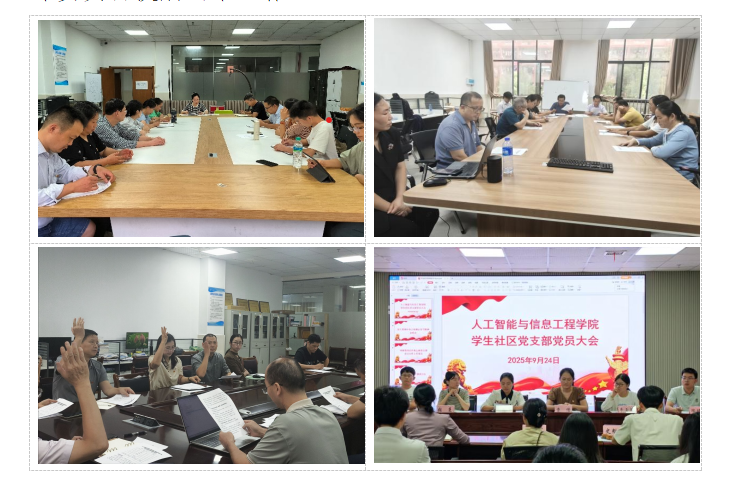 本站讯(院办供稿)9月24日下午,人工智能与信息工程学院4个党支部(数学系教工党支部、计算机系教工党支部、电信工程系教工党支部及学生社区党支部)分别召开党员大会,顺利完成党支部委员会换届选举工作。