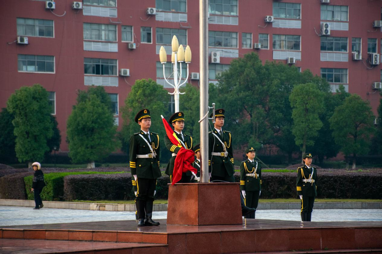 随着清晨的第一缕阳光洒落大地,宜春学院国旗护卫队迈着整齐的步伐,护送五星红旗走向升旗台,全体师生目光紧随国旗,神情肃穆。当《义勇军进行曲》激昂的旋律响起,五星红旗迎着朝阳缓缓升起,在场人员全体肃立,奏唱国歌,在激昂的旋律中筑牢信仰之基。
