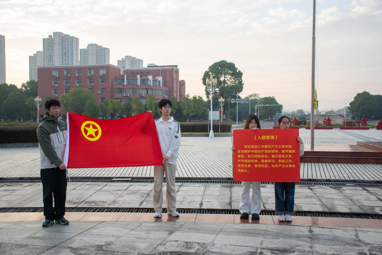 思政课结束之后,全体共青团员举起右手、握拳过肩,庄严重温入团誓词。嘹亮的誓言回荡在广场上空,不仅是团员们对团的承诺,更是新时代青年担当使命的坚定宣告。