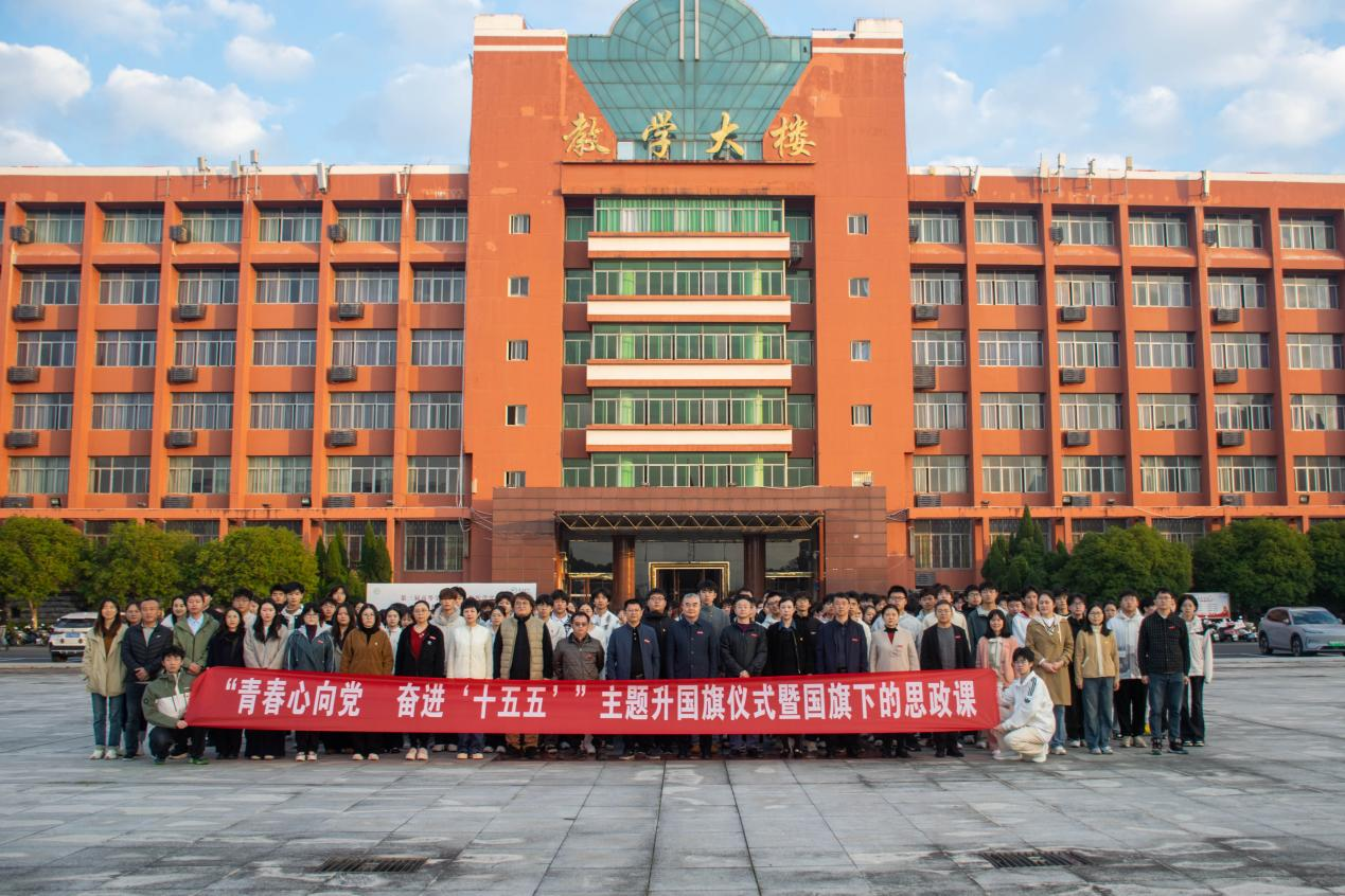 本站讯(学生记者:王磊)为深入学习贯彻党的二十届四中全会精神,引导团员青年深刻把握“十五五”规划目标要求,将个人理想融入国家发展大局。11月17日清晨,人工智能与信息工程学院与音乐舞蹈学院共同组织开展“青春心向党,奋进‘十五五’”主题升国旗仪式暨国旗下的思政课。校党委委员、副校长黄诚出席,学生工作处、招生就业处、计划财务处、审计处、保卫处等相关部门代表以及人工智能与信息工程学院与音乐舞蹈学院师生代表200余人参与。