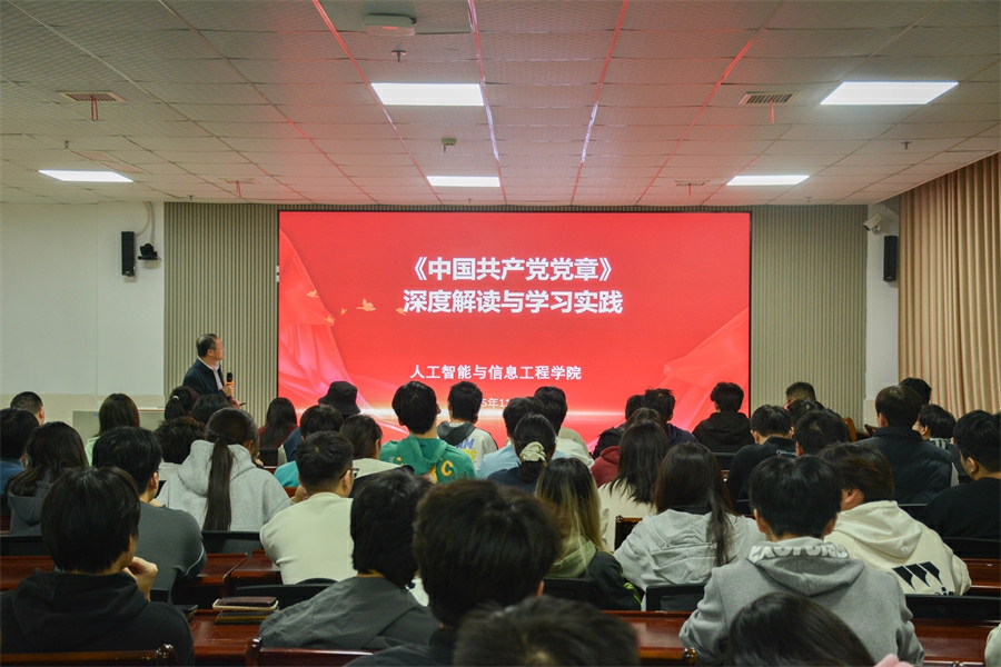本站讯(学生记者:杨淇 责任编辑:温雅晴)11月13日晚,人工智能与信息工程学院学生党支部精心筹备的第51期入党积极分子培训班第一讲正式拉开帷幕,院党委书记胡红武以《中国共产党章程》为核心主题,展开了一场深入浅出的授课,旨在引领入党积极分子深刻领悟党章精髓,切实强化政治素养与责任担当意识。