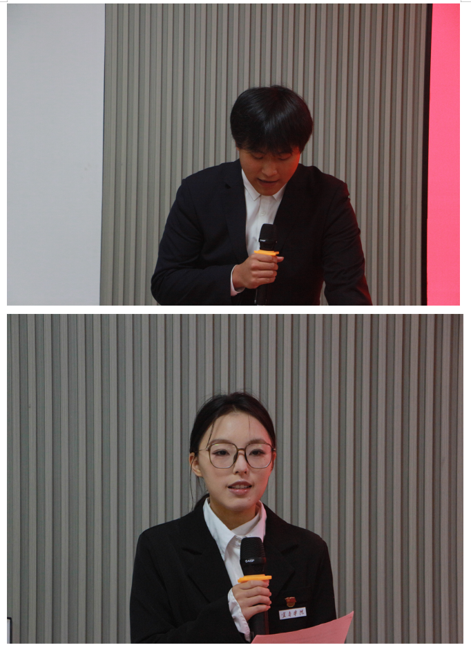 智能制造学院记者站代表高禹彦、我院学生会轮值主席郑云相继致辞,回顾良好合作情谊,肯定我院记者站在政策传达、校园文化建设等方面的重要作用,期待深化合作,共促学院团学工作发展,预祝我院取得佳绩。