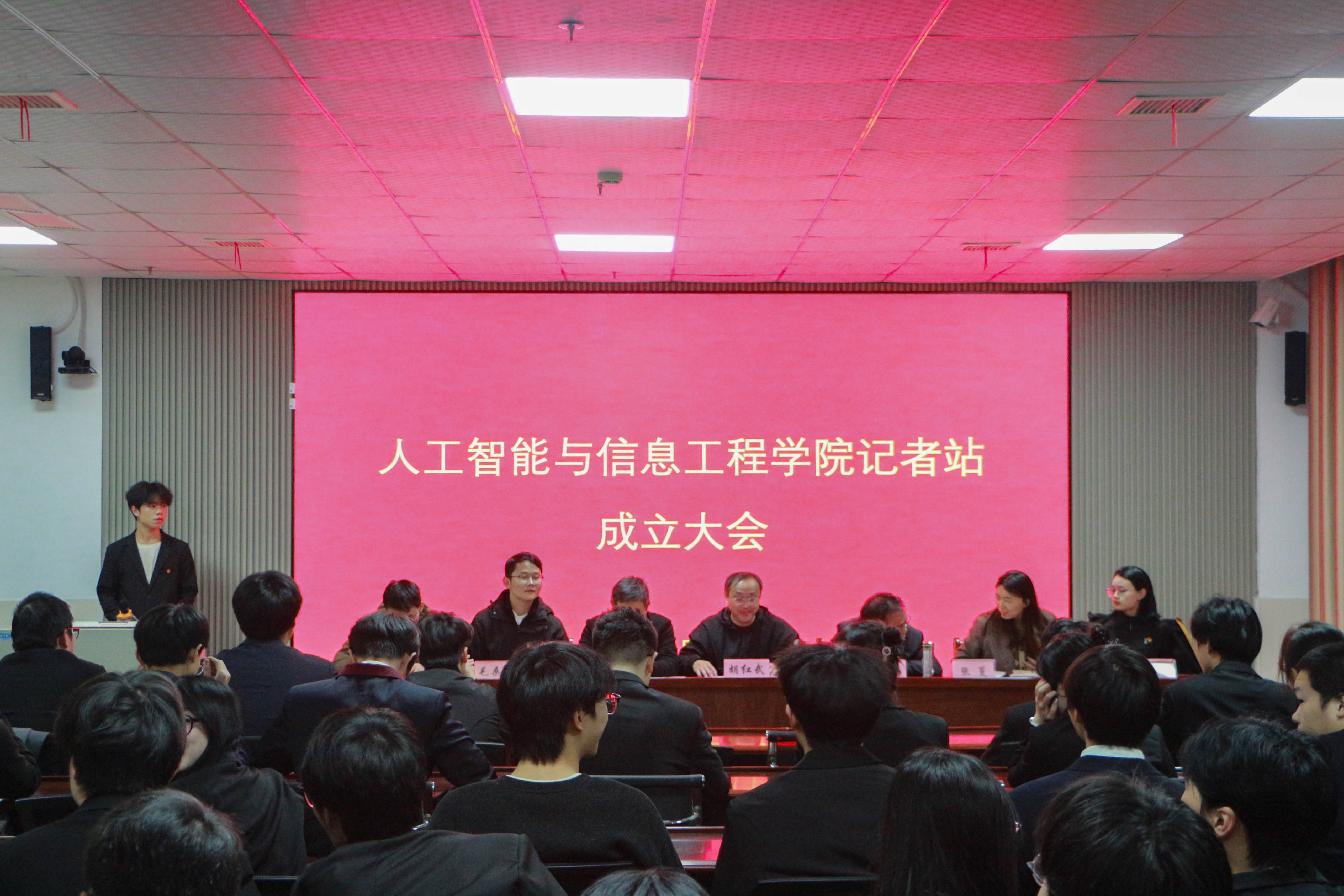 本站讯(学生记者:杨淇 责任编辑:温雅晴)11月19日晚,我院在实训楼E205召开记者站成立大会。学院领导班子、全体辅导员、校融媒体中心、兄弟院记者站、各学生组织代表及记者站全体成员参会。大会由记者站摄影部负责人卓冠城主持,旨在完善组织建设,保障工作顺利开展。