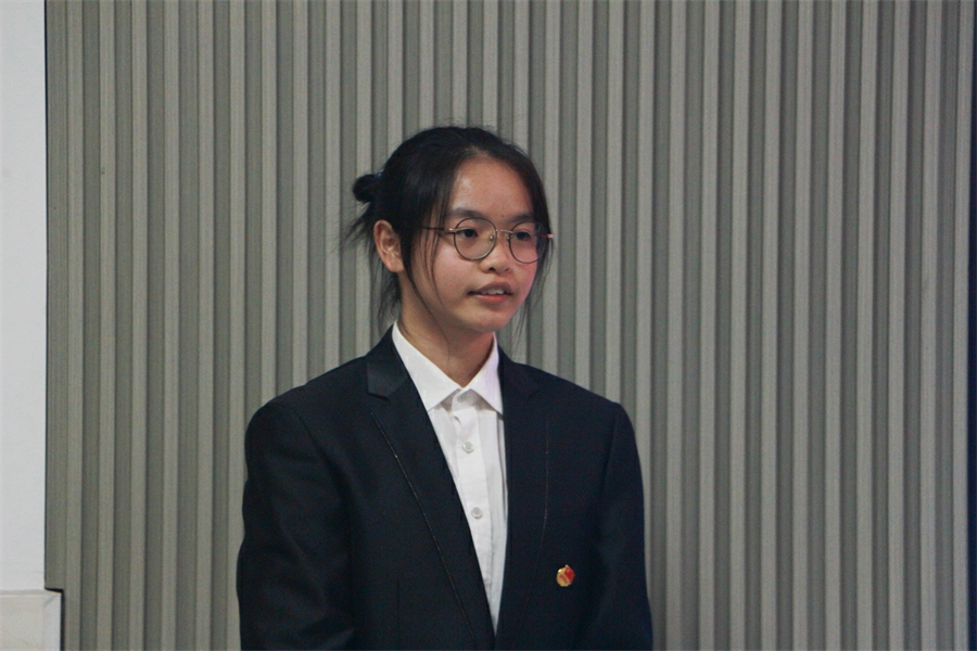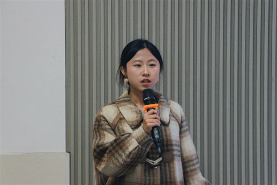 图为就业赛道23数应2班温雅晴做汇报讲话