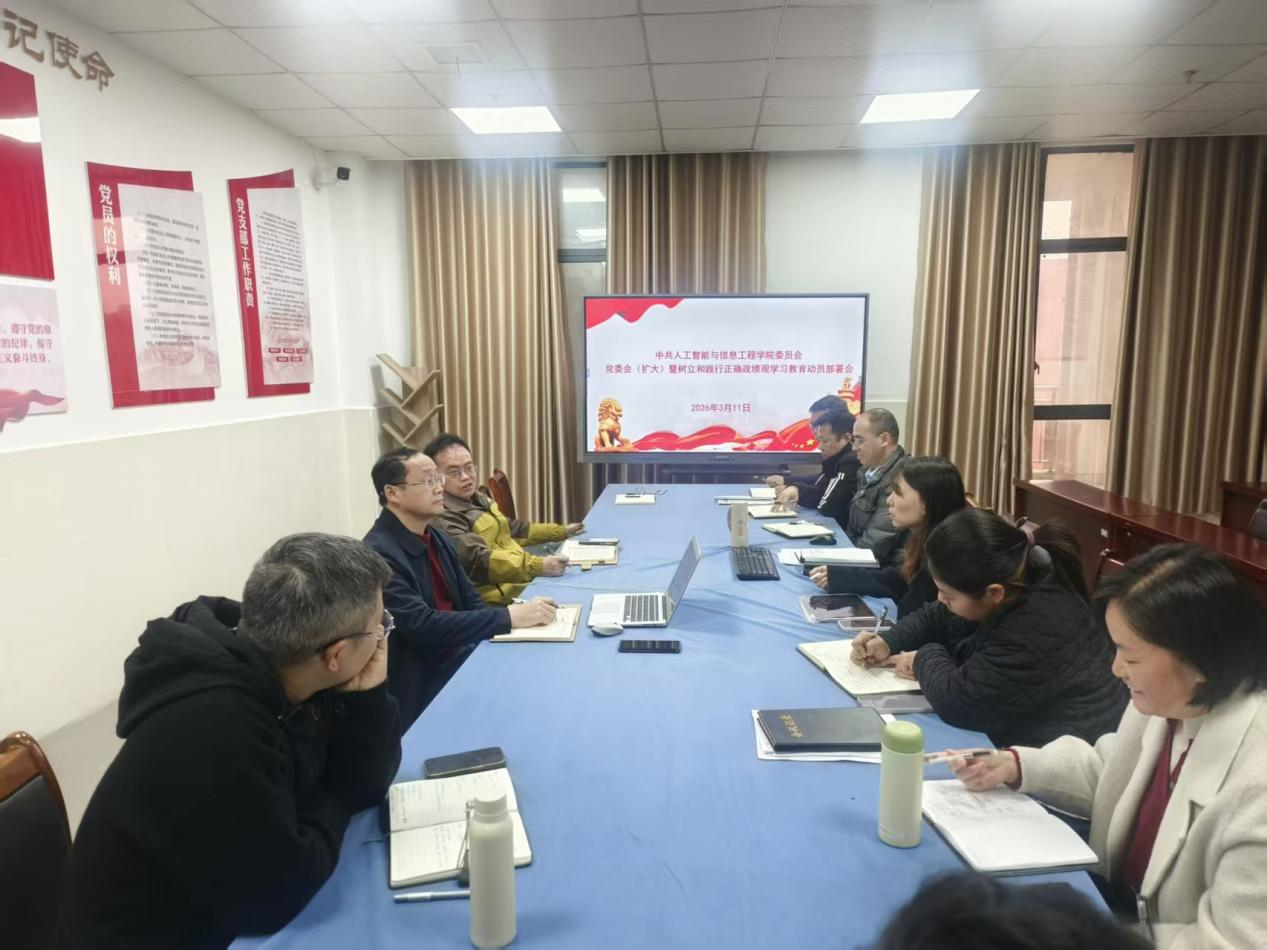 3月11日上午,人工智能与信息工程学院召开党委会(扩大)会议,部署树立和践行正确政绩观学习教育工作。学院党委书记胡红武主持会议,院党委成员、各党支部书记、科室负责人参会。