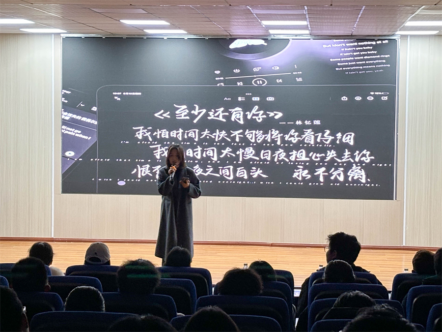 活动伊始,各班级代表队依次登台,他们围绕社恐、宿舍矛盾、人际误会、网络与现实平衡常见心理话题展开演绎。《未发送的好友申请》《迷途信笺》《桂糕封笺,扇解心墙》等剧目贴近生活、情感真挚,中场暖场歌曲《至少还有你》温情治愈,进一步烘托了活动氛围。其中《回声谷》以意象化的舞台呈现,将内心的自我否定、外界评价的干扰化作山谷中的阵阵回音,生动展现了当代大学生在自我怀疑与他人眼光中挣扎、最后学会倾听内心、与自己和解的成长历程,剧情细腻深刻、极具感染力。
