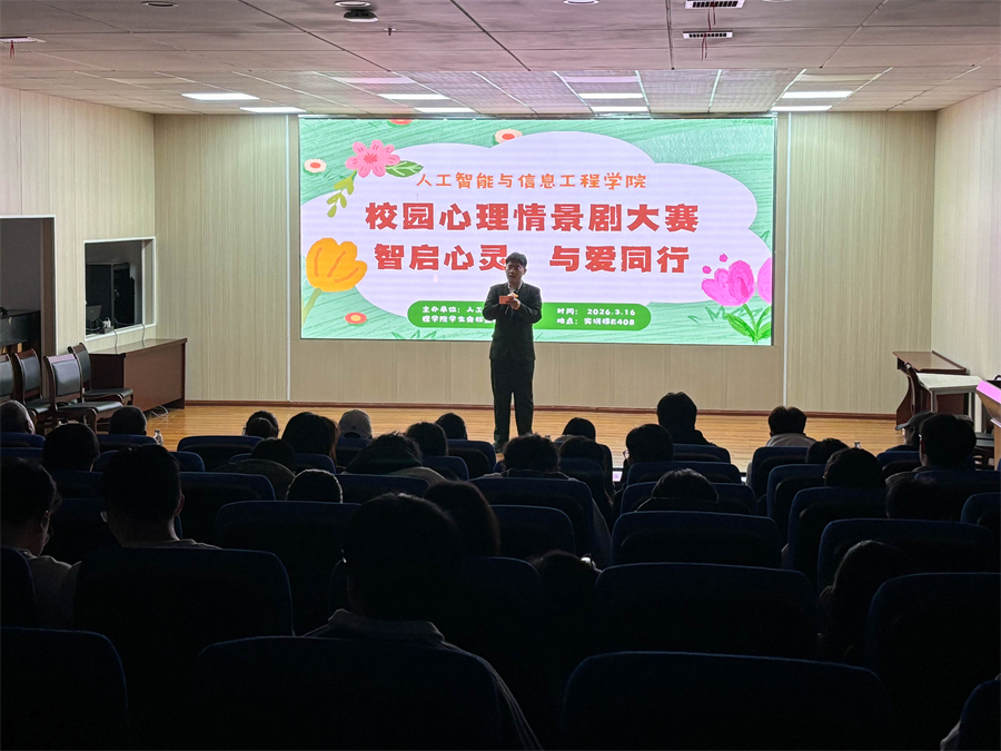 本站讯(学生记者:周御轩 程浩 张楚洋 责任编辑:王磊)3月16日晚,我院于实训楼E408举行校园心理情景剧大赛。我院辅导员史魁杰、余晓霞、甘波、晏卫城老师及全体参赛选手共同参与此次活动。此次活动由25软工三班李宇翔主持,旨在以情景演绎普及心理知识、疏导情绪、促进自我认知,营造健康和谐的校园心理氛围。