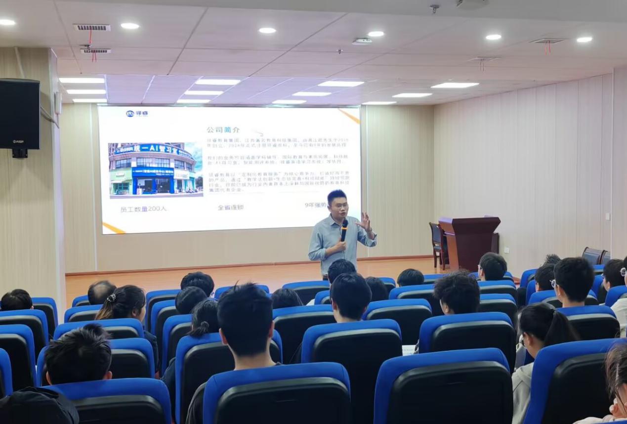 宣讲会伊始,驿睿教育集团创始人黄江昆详细介绍了集团的发展历程。目前,驿睿教育业务涵盖人工智能教育、智能学习系统研发及家庭教育等领域,并已在江西多地开设多家旗舰校。此外,集团拥有体系化的工作模式与完善的晋升通道,不仅福利健全,更高度重视员工培训与人才选拔,致力于打造充满活力的工作氛围。