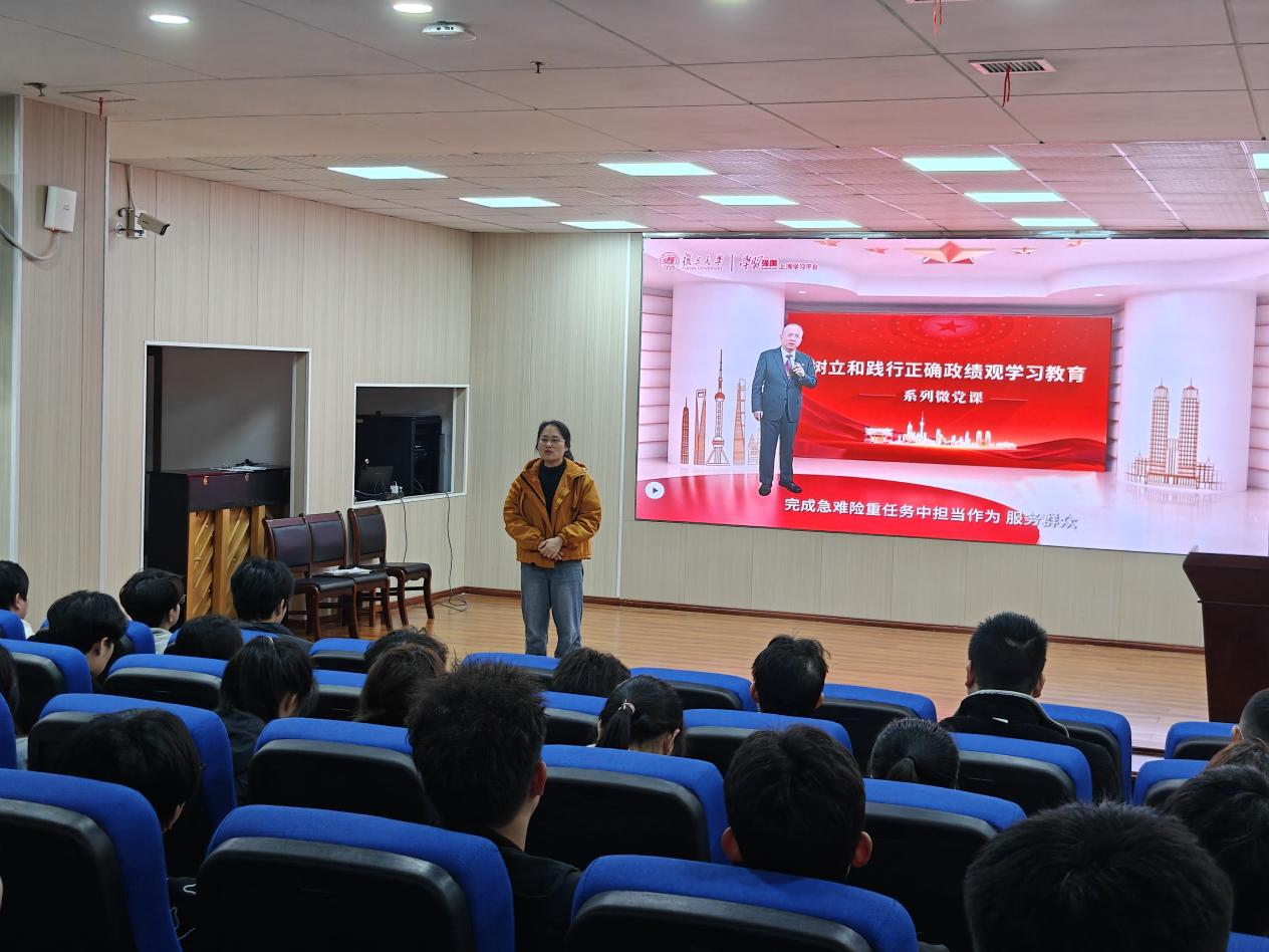 会议伊始,全体与会人员集中观看了由复旦大学党委党校出品的【复旦微党课】系列之《树立和践行正确政绩观:深刻领悟在全党开展树立和践行正确政绩观学习教育的重大意义》。视频课程围绕正确政绩观的科学内涵、时代价值以及在全党开展相关学习教育的深远意义进行了系统阐释,通过生动的案例与理论剖析,帮助大家深刻认识到,树立和践行正确政绩观是落实以人民为中心的发展思想的必然要求,是推动事业高质量发展的重要保障,更是每一位党员在思想淬炼与行动自觉中必须坚守的根本遵循。